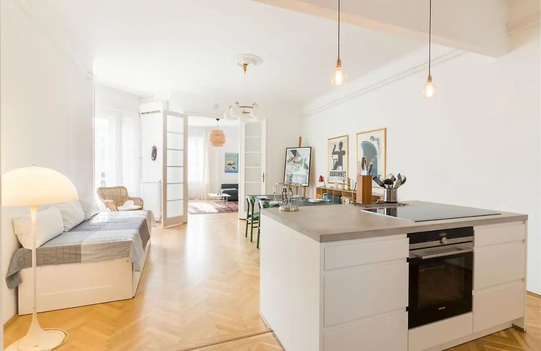 The spacious 105 m² Klauzal Apartment W/3 Bedrooms, French Balcony is located in the 07. Erzsebetvaros district, and Blaha Lujza Square tube station is 5 minutes' walk away. Guests travelling by car can benefit from parking available nearby.